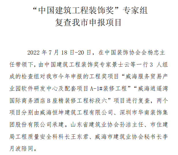 “中國建筑工程裝飾獎”專家組 復(fù)查我市申報(bào)項(xiàng)目