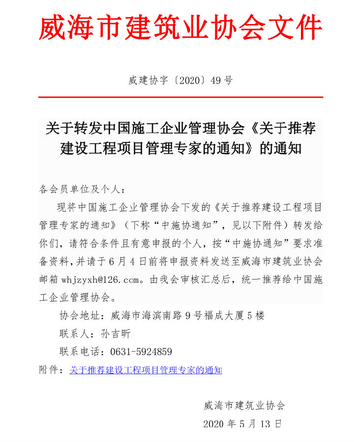 關(guān)于推薦建設(shè)工程項目管理專家的通知