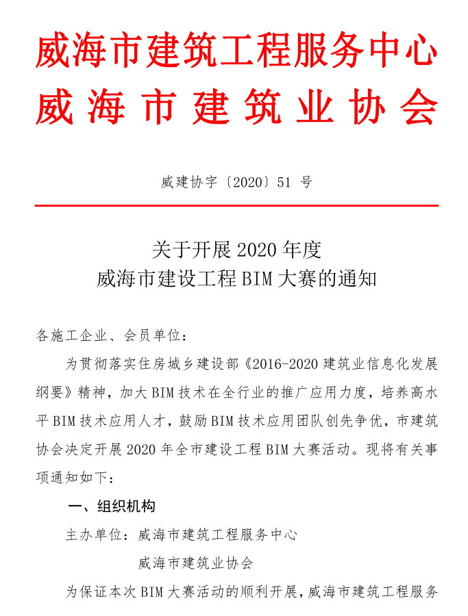 關(guān)于開(kāi)展2020年度威海市建設(shè)工程BIM大賽的通知