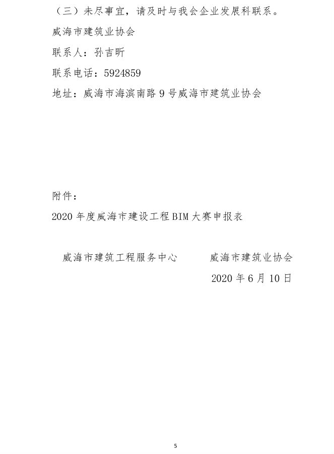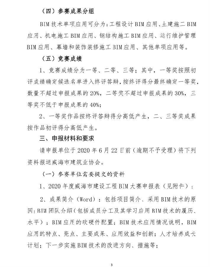 >關(guān)于開(kāi)展2020年度威海市建設(shè)工程BIM大賽的通知