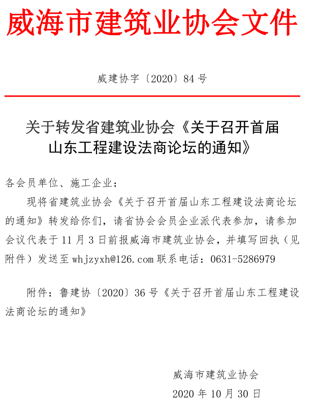 84號(hào)附件魯建協(xié)〔2020〕36號(hào)《關(guān)于召開(kāi)首屆山東工程建設(shè)法商論壇的通知》.zip