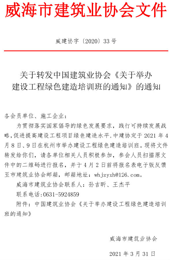 關(guān)于轉(zhuǎn)發(fā)中國(guó)建筑業(yè)協(xié)會(huì)《關(guān)于舉辦 建設(shè)工程綠色建造培訓(xùn)班的通知》的通知