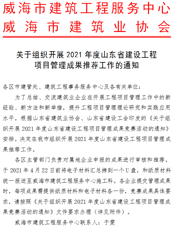 >關于組織開展2021年度山東省建設工程 項目管理成果推薦工作的通知