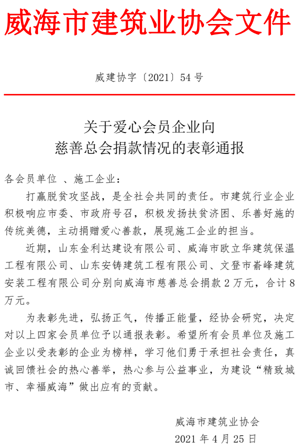 >關(guān)于愛(ài)心會(huì)員企業(yè)向 慈善總會(huì)捐款情況的表彰通報(bào)