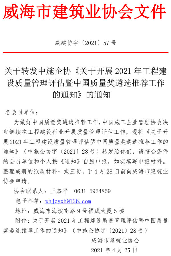 關于轉發(fā)中施企協(xié)《關于開展2021年工程建設質量管理評估暨中國質量獎遴選推薦工作的通知》的通知.zip