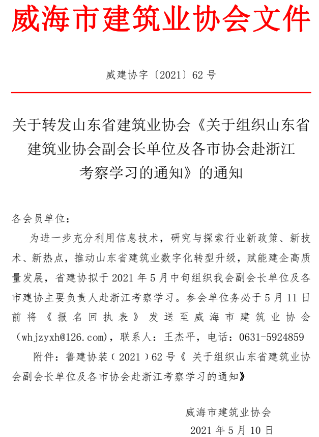 關(guān)于轉(zhuǎn)發(fā)山東省建筑業(yè)協(xié)會《關(guān)于組織山東省建筑業(yè)協(xié)會副會長單位及各市協(xié)會赴浙江考察學(xué)習(xí)的通知》的通知