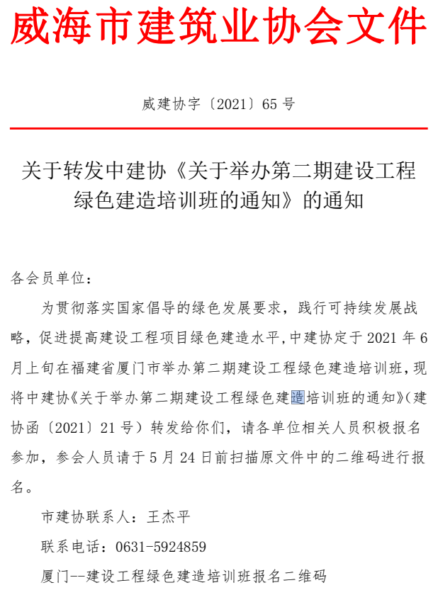 關(guān)于舉辦第二期建設(shè)工程綠色建造培訓(xùn)班的通知