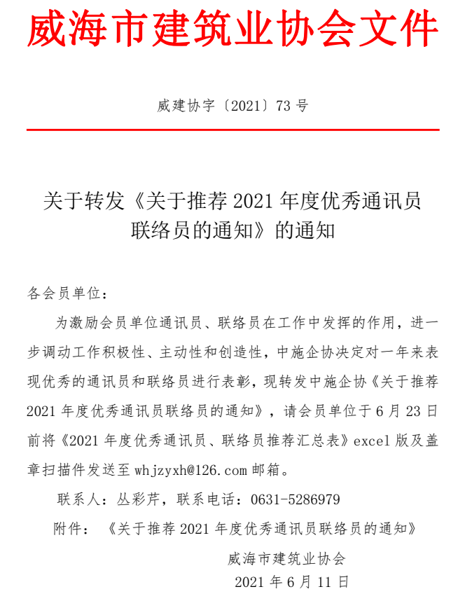 >關(guān)于轉(zhuǎn)發(fā)《關(guān)于推薦2021年度優(yōu)秀通訊員 聯(lián)絡(luò)員的通知》的通知
