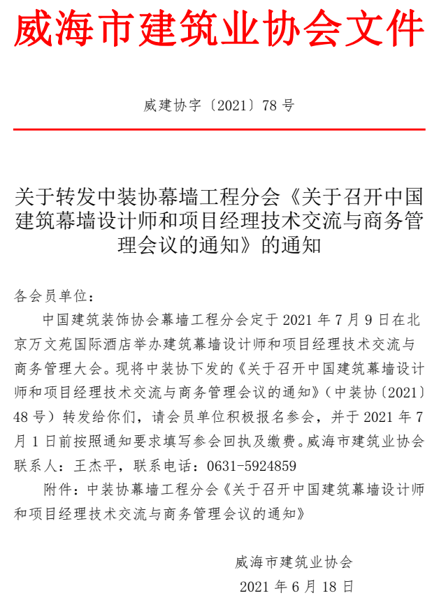 2021年78號關于轉(zhuǎn)發(fā)中裝協(xié)幕墻工程分會《關于召開中國建筑幕墻設計師和項目經(jīng)理技術交流與商務管理會議的通知》的通知.zip
