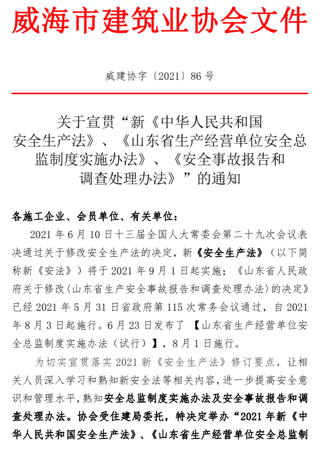 關(guān)于宣貫“新《中華人民共和國 安全生產(chǎn)法》、《山東省生產(chǎn)經(jīng)營單位安全總監(jiān)制度實施辦法》、《安全事故報告和 調(diào)查處理辦法》”的通知