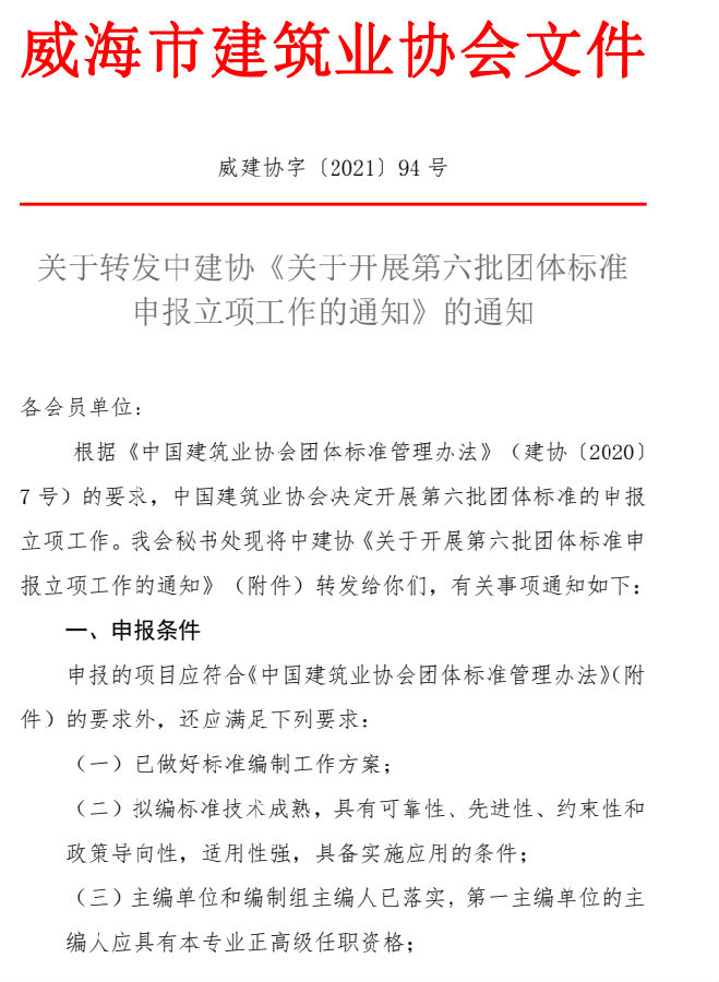 關(guān)于轉(zhuǎn)發(fā)中建協(xié)《關(guān)于開(kāi)展第六批團(tuán)體標(biāo)準(zhǔn) 申報(bào)立項(xiàng)工作的通知》的通知 ?