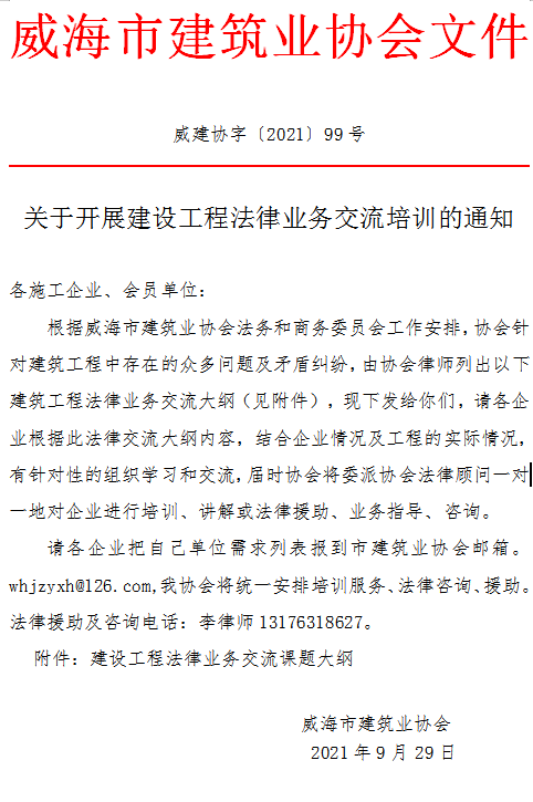 關(guān)于開展建設(shè)工程法律業(yè)務(wù)交流培訓(xùn)的通知