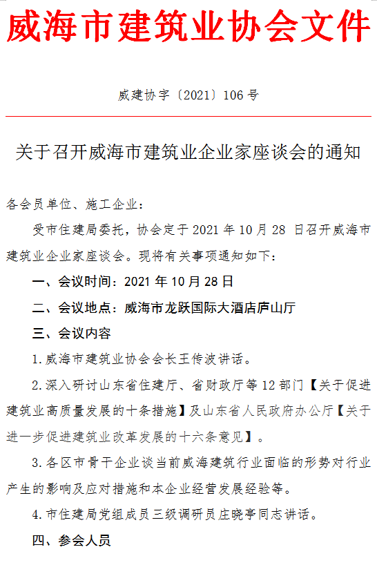 關于召開威海市建筑業(yè)企業(yè)家座談會的通知
