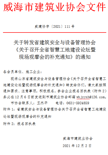 關(guān)于轉(zhuǎn)發(fā)省建筑安全與設(shè)備管理協(xié)會《關(guān)于召開全省智慧工地建設(shè)論壇暨現(xiàn)場觀摩會的補(bǔ)充通知》的通知