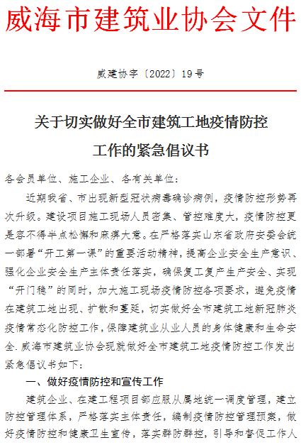 關于切實做好全市建筑工地疫情防控工作的緊急倡議書