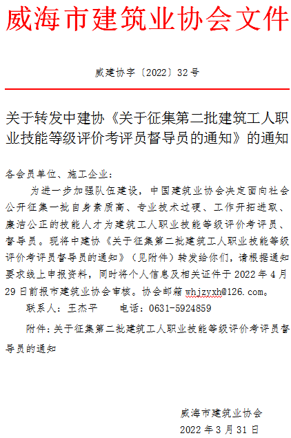 關于轉發(fā)中建協《關于征集第二批建筑工人職業(yè)技能等級評價考評員督導員的通知》的通知