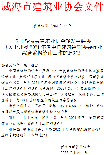 附件1:關于轉發(fā)中裝協《關于開展2021年度中國建筑裝飾協會行業(yè)綜合數據統(tǒng)計工作的通知》.pdf