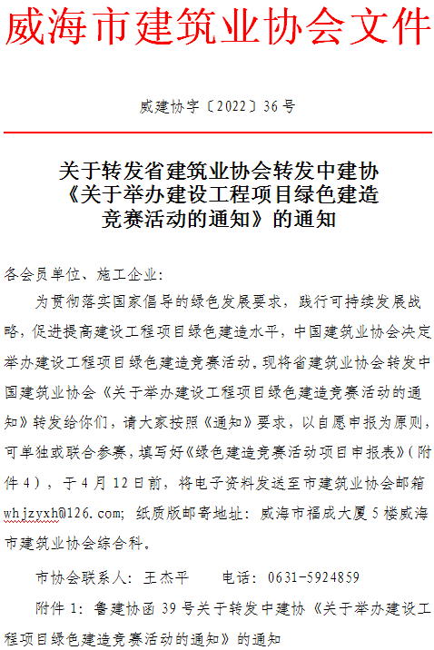 關(guān)于轉(zhuǎn)發(fā)省建筑業(yè)協(xié)會(huì)轉(zhuǎn)發(fā)中建協(xié)《關(guān)于舉辦建設(shè)工程項(xiàng)目綠色建造競(jìng)賽活動(dòng)的通知》的通知