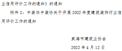 附件2:中裝協(xié)中裝協(xié)關于開展2022年度建筑裝飾行業(yè)信用評價工作的通知.pdf