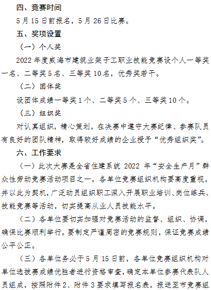 >關(guān)于舉辦2022年度威海市建筑業(yè)架子工職業(yè)技能競(jìng)賽的通知