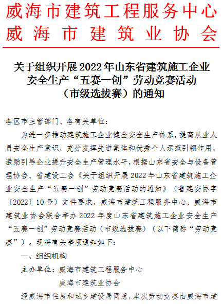 >關(guān)于組織開展2022年山東省建筑施工企業(yè)安全生產(chǎn)“五賽一創(chuàng)”勞動競賽活動