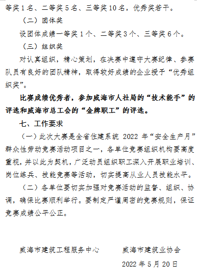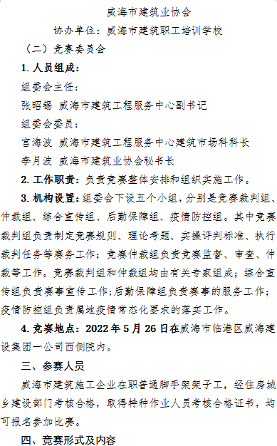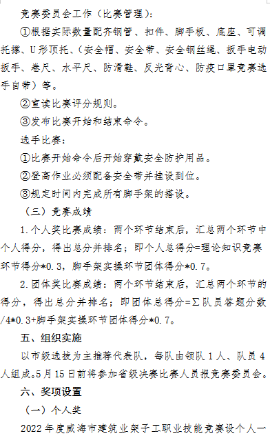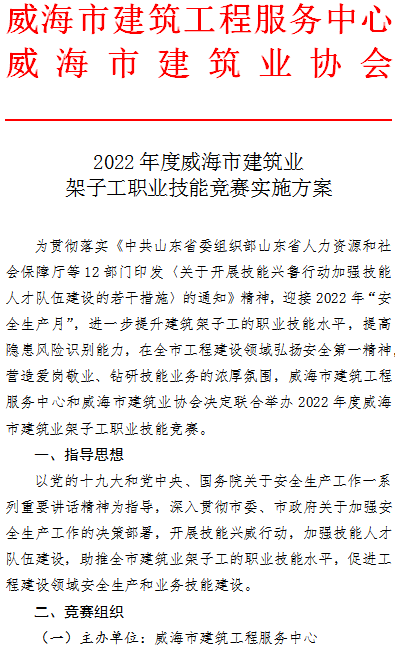 >2022年度威海市建筑業(yè)架子工職業(yè)技能競(jìng)賽實(shí)施方案