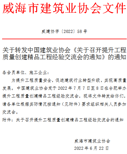 關(guān)于轉(zhuǎn)發(fā)中國建筑業(yè)協(xié)會(huì)《關(guān)于召開提升工程質(zhì)量創(chuàng)建精品工程經(jīng)驗(yàn)交流會(huì)的通知》的通知