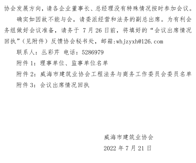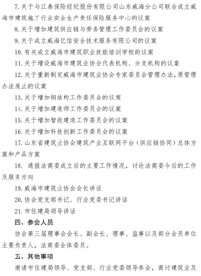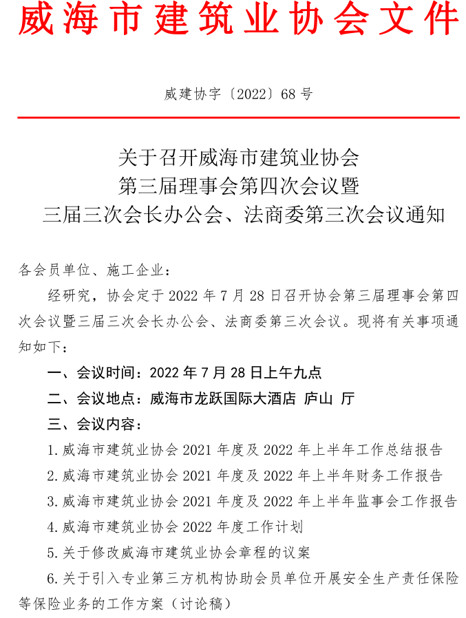 關(guān)于召開威海市建筑業(yè)協(xié)會 第三屆理事會第四次會議暨 三屆三次會長辦公會、法商委第三次會議通知