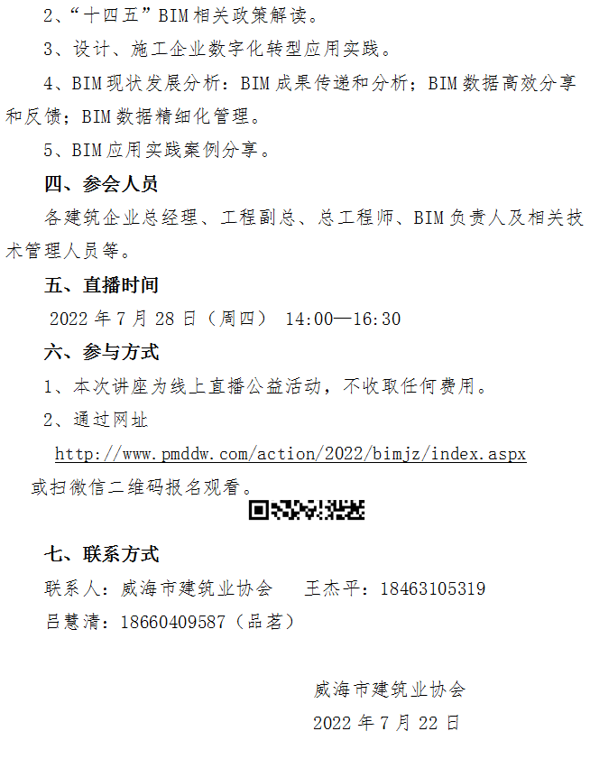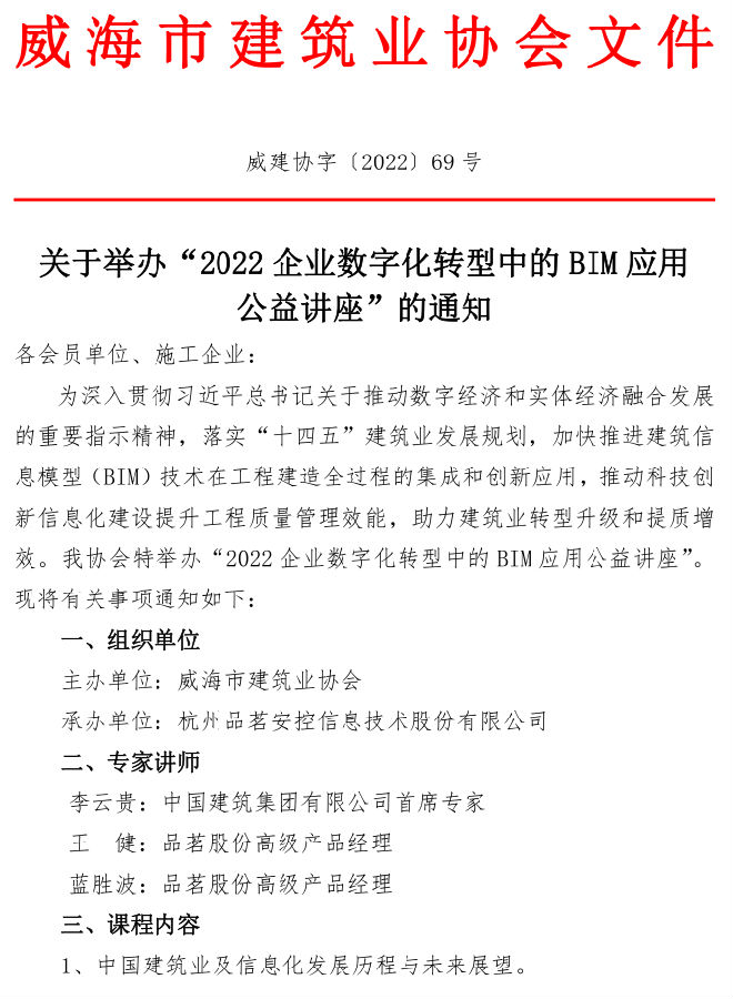 >關(guān)于舉辦“2022企業(yè)數(shù)字化轉(zhuǎn)型中的BIM應(yīng)用 公益講座”的通知