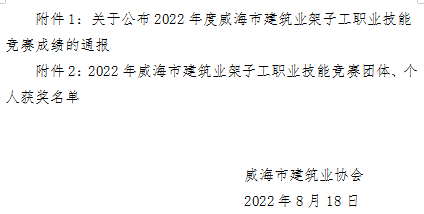 附件1:關(guān)于公布2022年度威海市建筑業(yè)架子工職業(yè)技能競賽成績的通報.pdf