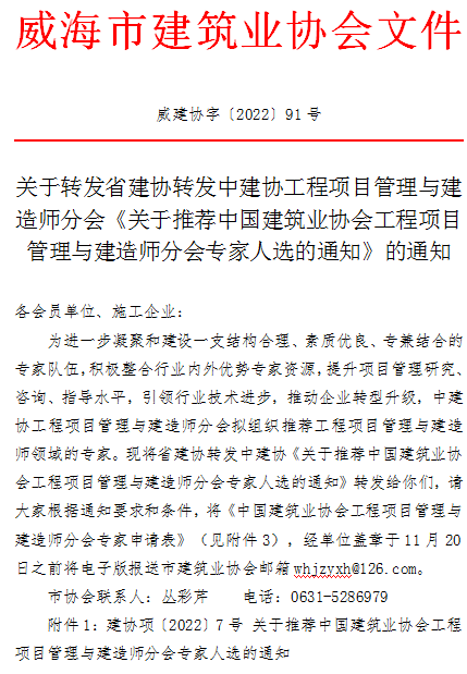 關(guān)于轉(zhuǎn)發(fā)省建協(xié)轉(zhuǎn)發(fā)中建協(xié)工程項目管理與建造師分會《關(guān)于推薦中國建筑業(yè)協(xié)會工程項目管理與建造師分會專家人選的通知》的通知