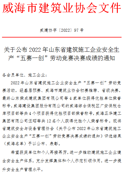 附件1:關(guān)于公布2022年山東省建筑施工企業(yè)安全生產(chǎn)“五賽一創(chuàng)”勞動(dòng)競賽決賽成績的通知.pdf