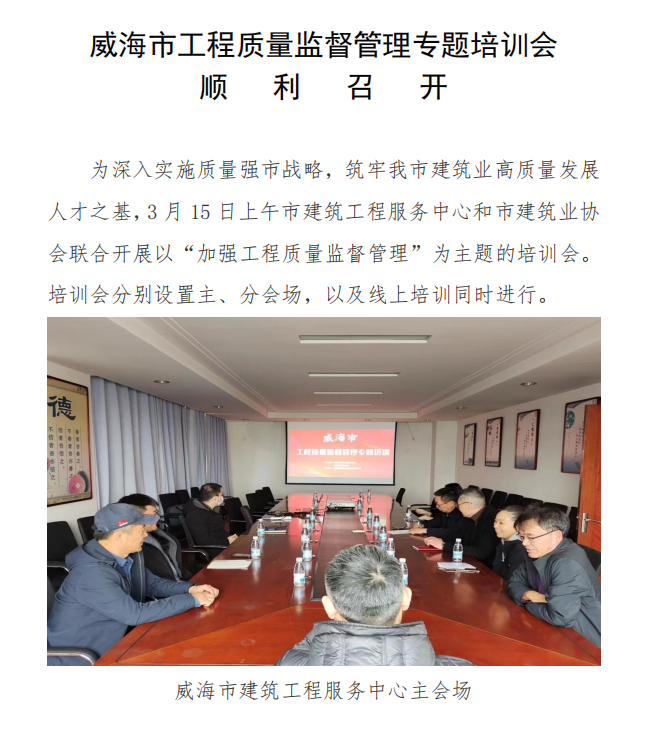 >威海市工程質(zhì)量監(jiān)督管理專題培訓(xùn)會 順 利 召 開