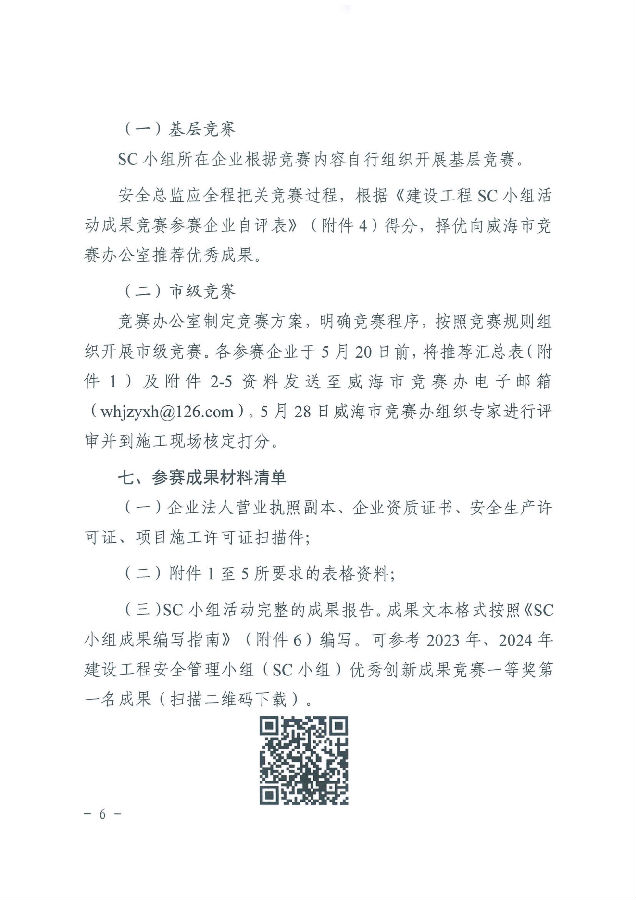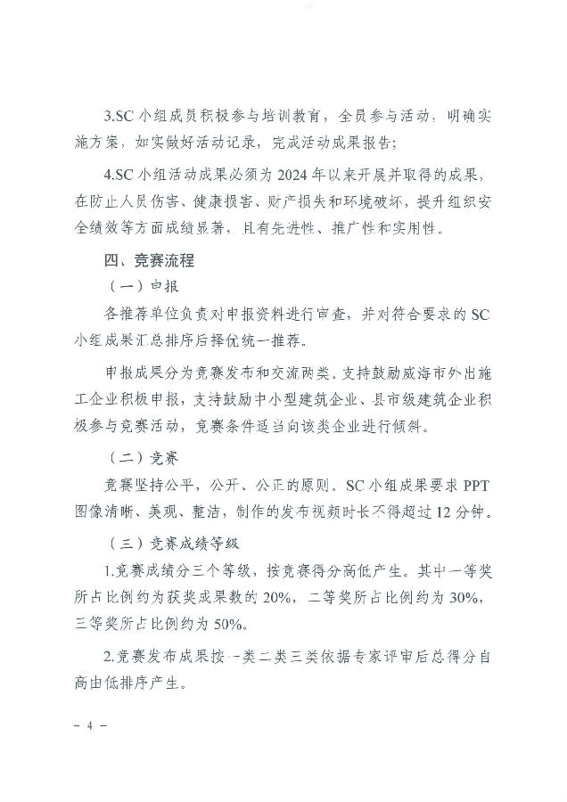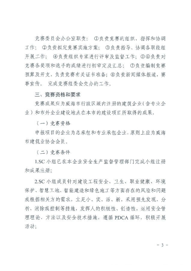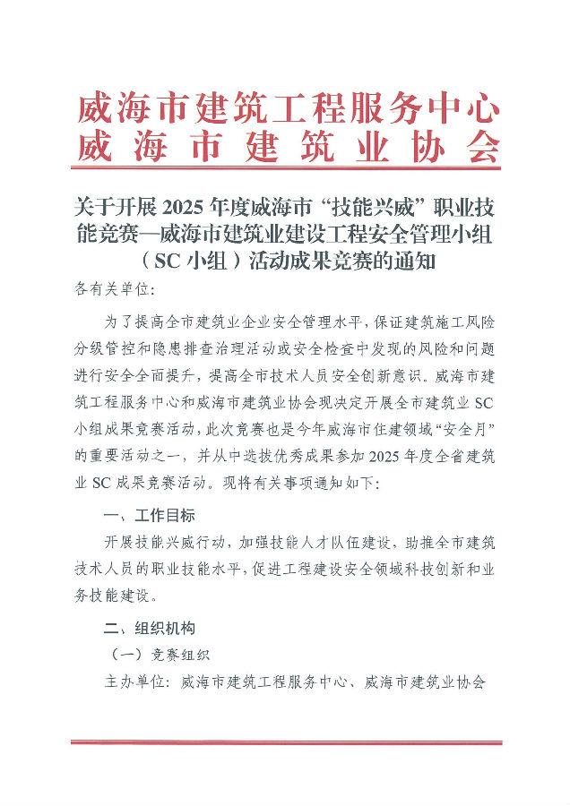 >關于開展2025年度威海市“技能興威”職業(yè)技能競賽—威海市建筑業(yè)建設工程安全管理小組(SC小組)活動成果競賽的通知