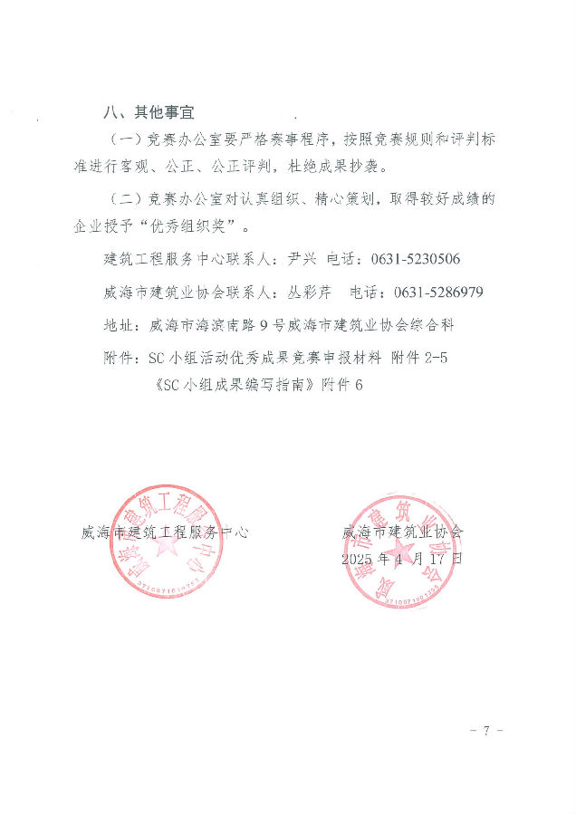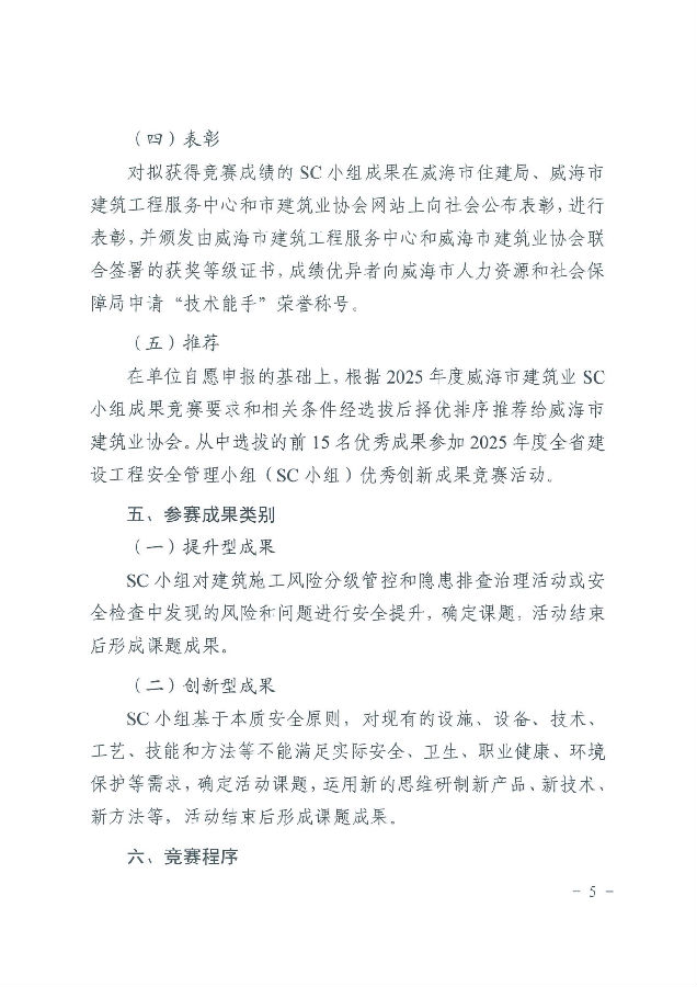 關于開展2025年度威海市“技能興威”職業(yè)技能競賽—威海市建筑業(yè)建設工程安全管理小組(SC小組)活動成果競賽的通知