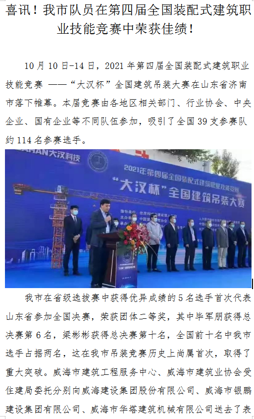 >喜訊!我市隊員在第四屆全國裝配式建筑職業(yè)技能競賽中榮獲佳績!