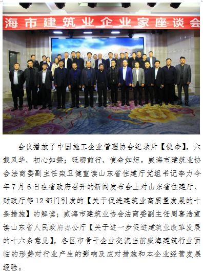 威海市建筑業(yè)企業(yè)家座談會(huì)召開(kāi)