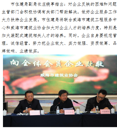 >威海市建筑業(yè)企業(yè)家座談會(huì)召開(kāi)