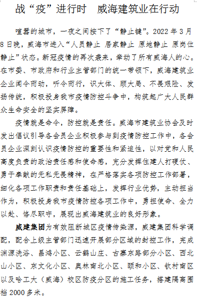 戰(zhàn)“疫”進行時 威海建筑業(yè)在行動