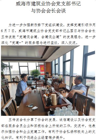 威海市建筑業(yè)協(xié)會黨支部書記與協(xié)會會長會談