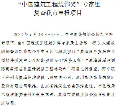 >“中國建筑工程裝飾獎”專家組復(fù)查我市申報項目