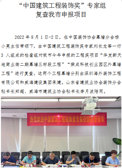 “中國建筑工程裝飾獎”專家組復(fù)查我市申報項目(幕墻)