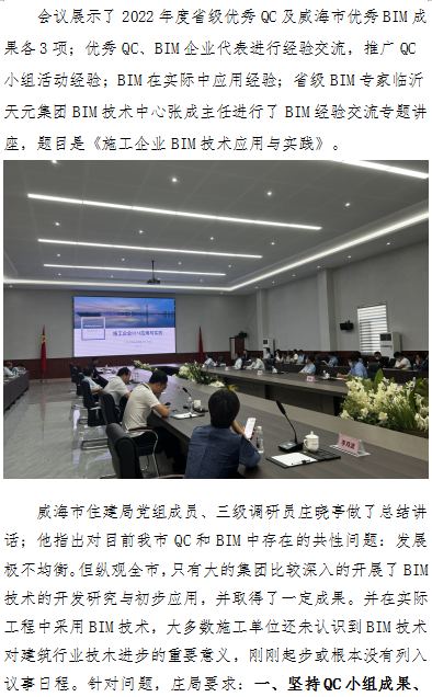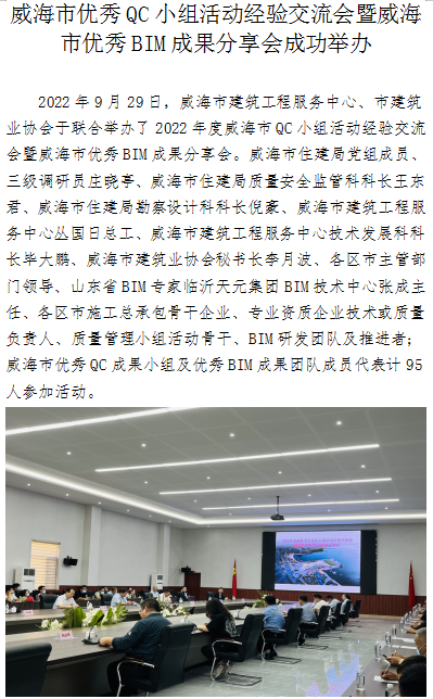 威海市優(yōu)秀QC小組活動經驗交流會暨威海市優(yōu)秀BIM成果分享會成功舉辦