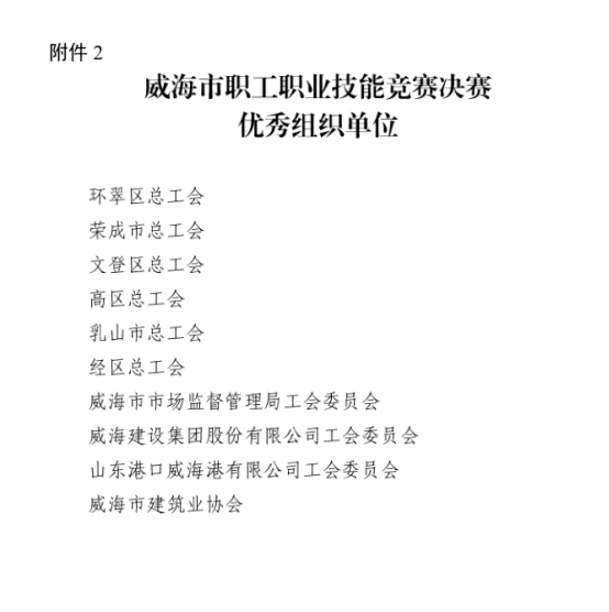 威海市建筑業(yè)協(xié)會榮獲市職工職業(yè)技能競賽決賽優(yōu)秀組織單位