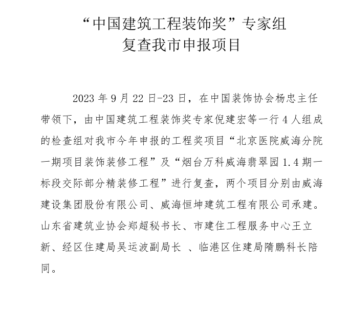 “中國建筑工程裝飾獎”專家組 復(fù)查我市申報項目